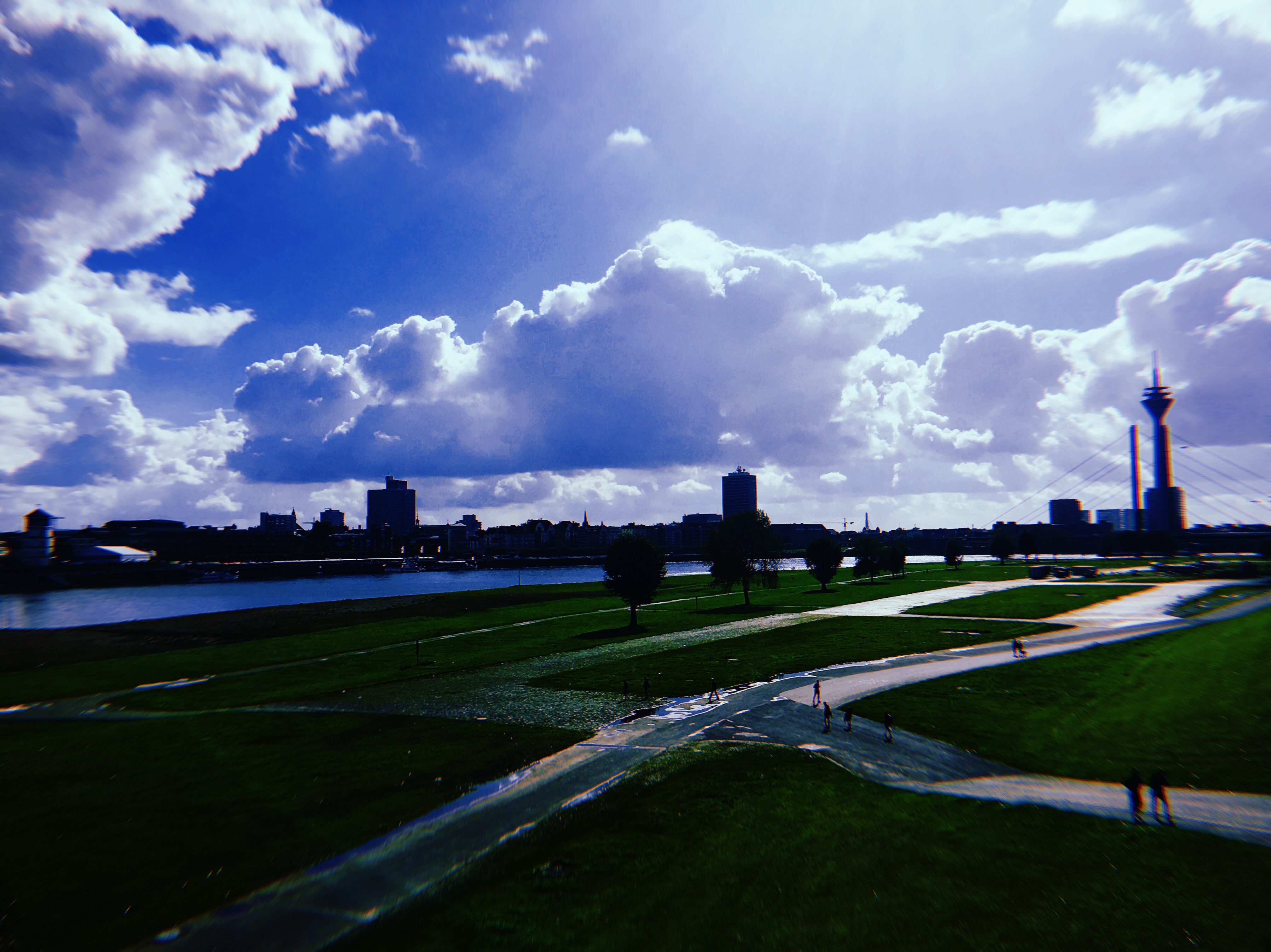 Обожаю зеленые лужайки, обнимающие Рейн по обе стороны. Почти всегда, когда еду на выходные в Дюссельдорф, в итоге оказываюсь возле Рейна. Там и кафешки, и книжные стойки, где каждый желающий может абсолютно бесплатно одолжить чтиво, музеи и самое главное – панорама. Она необыкновенно красиво заливается солнечным светом в любое время года.